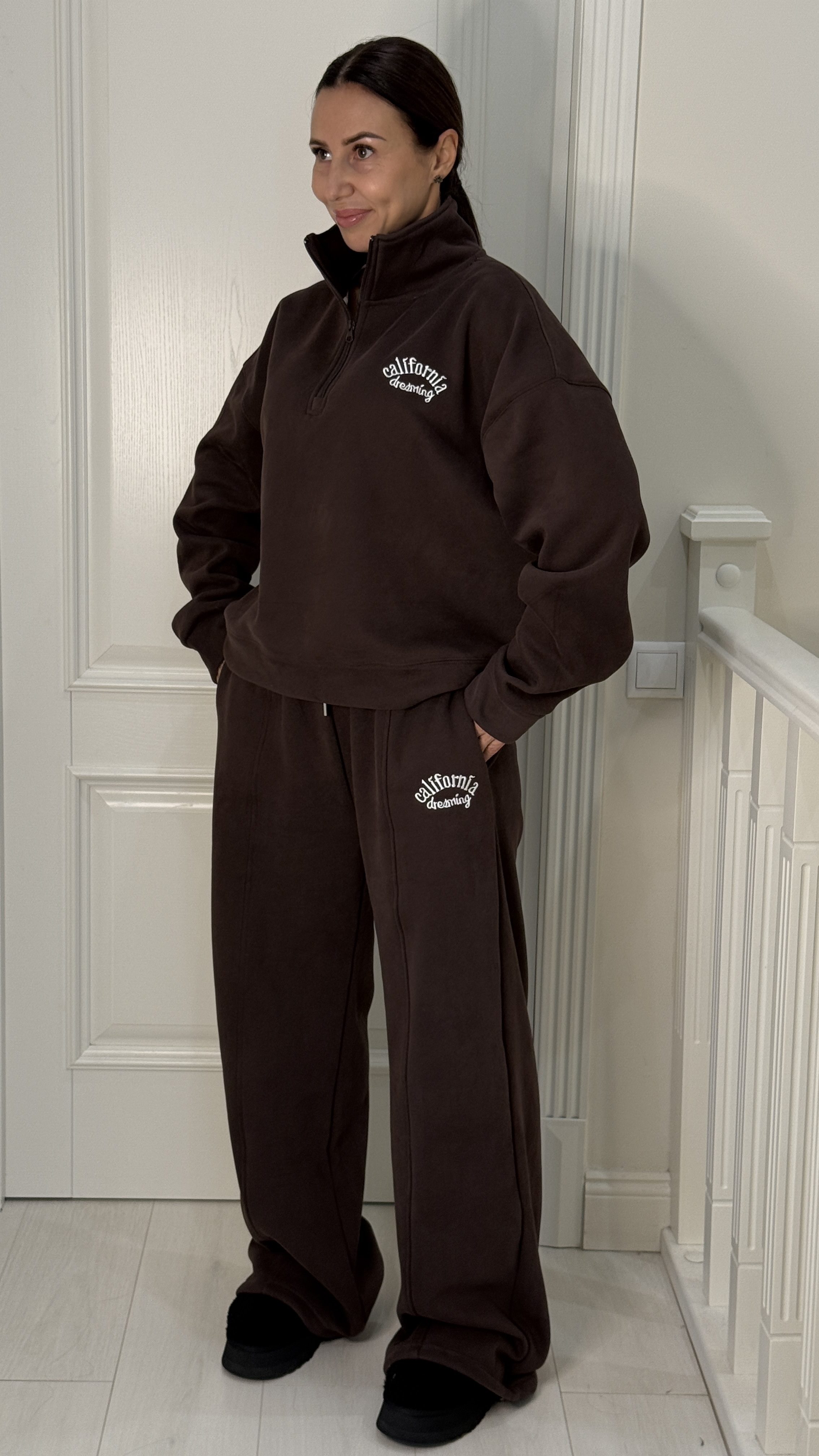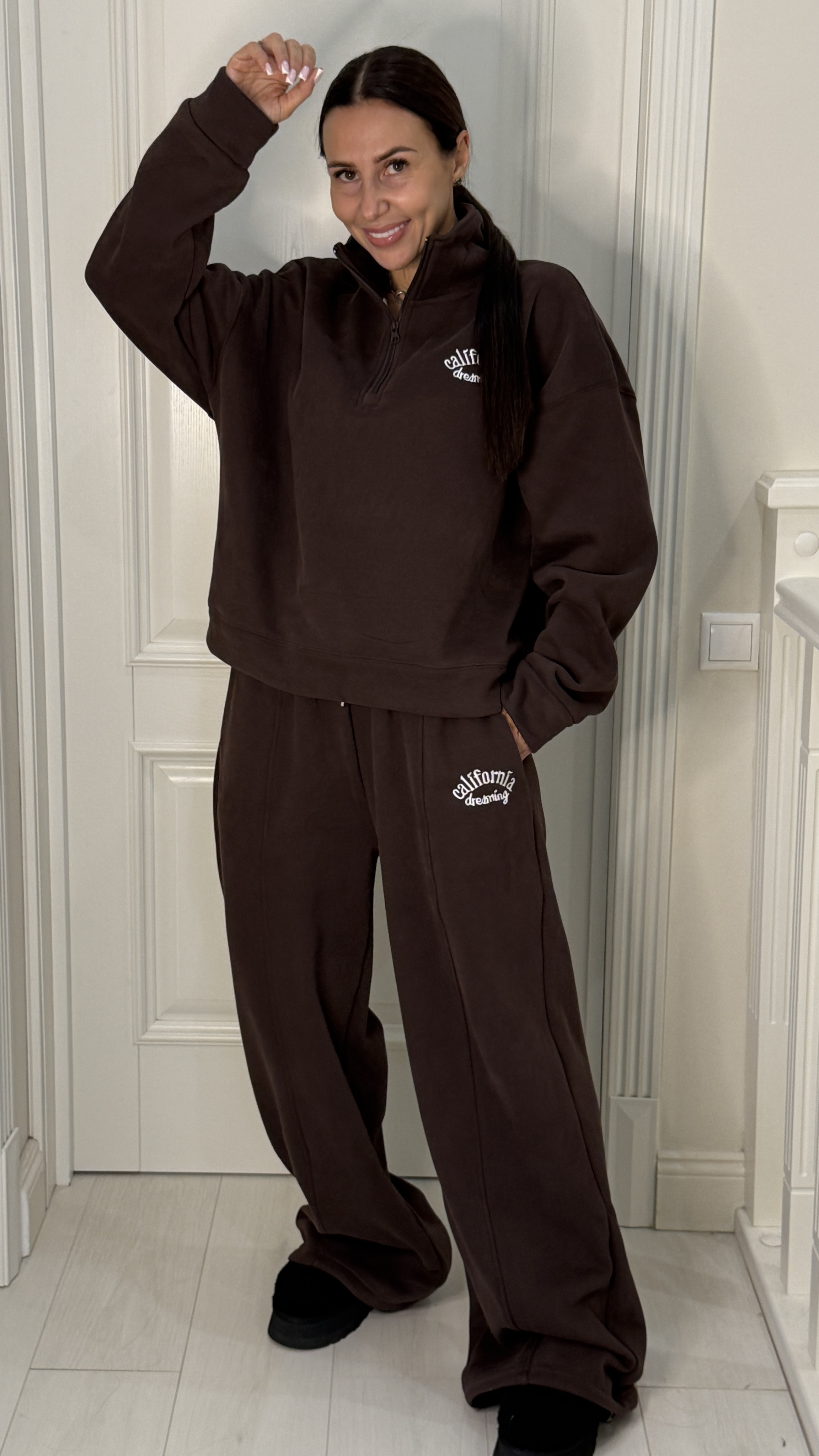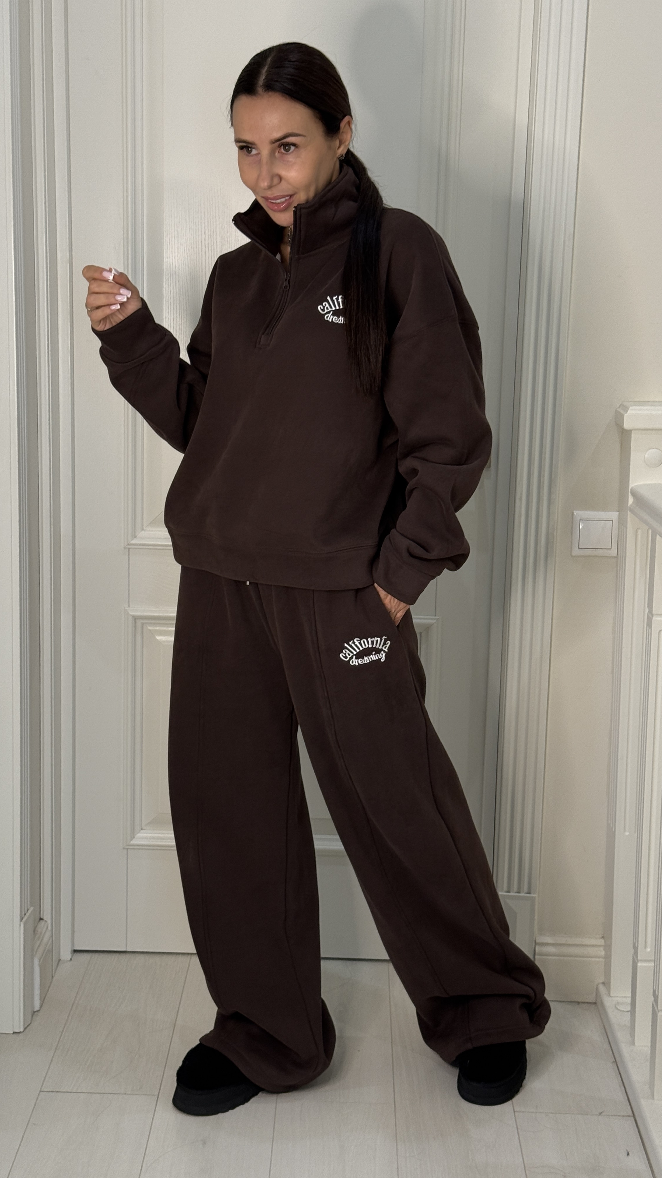 Спортивный костюм "Калифорния" из мягкого флиса обеспечивает тепло и комфорт в любую погоду. Свободный крой подчеркивает индивидуальность, а идеальное прилегание позволяет двигаться свободно. Стильный дизайн делает этот комплект универсальным элементом гардероба – от домашних тренировок до прогулок по городу. Покупайте прямо сейчас и наслаждайтесь уютом и модным внешним видом!